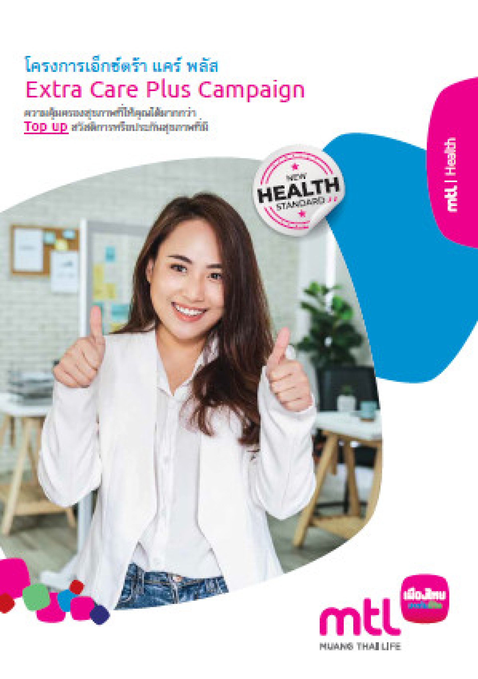 โครงการเอ็กซ์ตร้า แคร์ พลัส ตัวช่วยเติมเต็มค่ารักษาพยาบาล ที่ให้คุณได้รับความคุ้มครองค่ารักษาพยาบาลแบบเหมาจ่าย โดยมีความรับผิดส่วนแรกที่ช่วยให้เบี้ยประกันภัยถูกกว่าความคุ้มครองสุขภาพทั่วไป