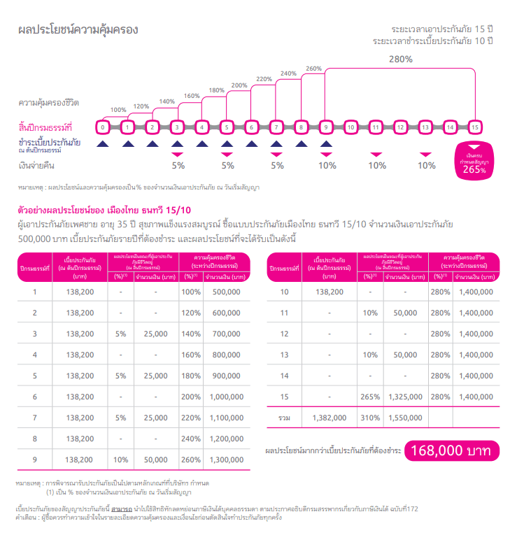 - ผลประโยชน์ตลอดสัญญา 310% ของจำนวนเงินเอาประกันภัย