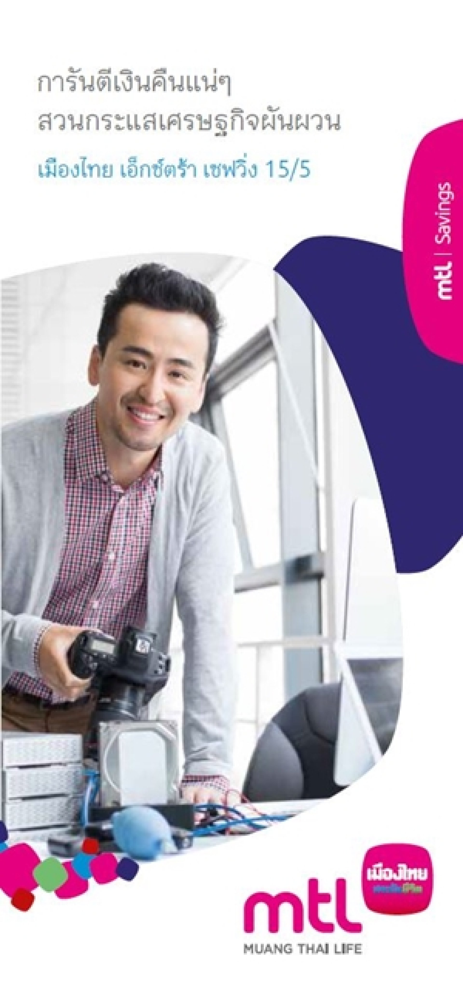 เมืองไทย เอ็กตร้า เซฟวิ่ง 15/5 การันตีมีเงินจ่ายคืนทุกปี ไม่ต้องกังวลกับผลตอบแทน แม้อัตราดอกเบี้ยในตลาดจะลดลง สามารถลดหย่อนภาษีได้ 100,0000 บาทด้วย